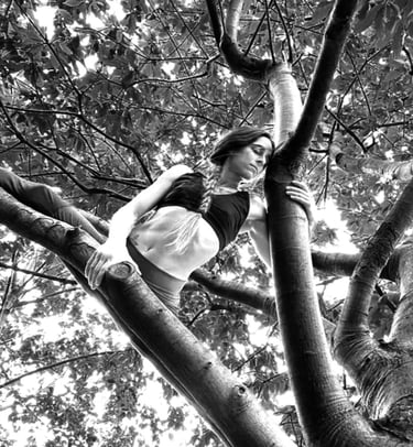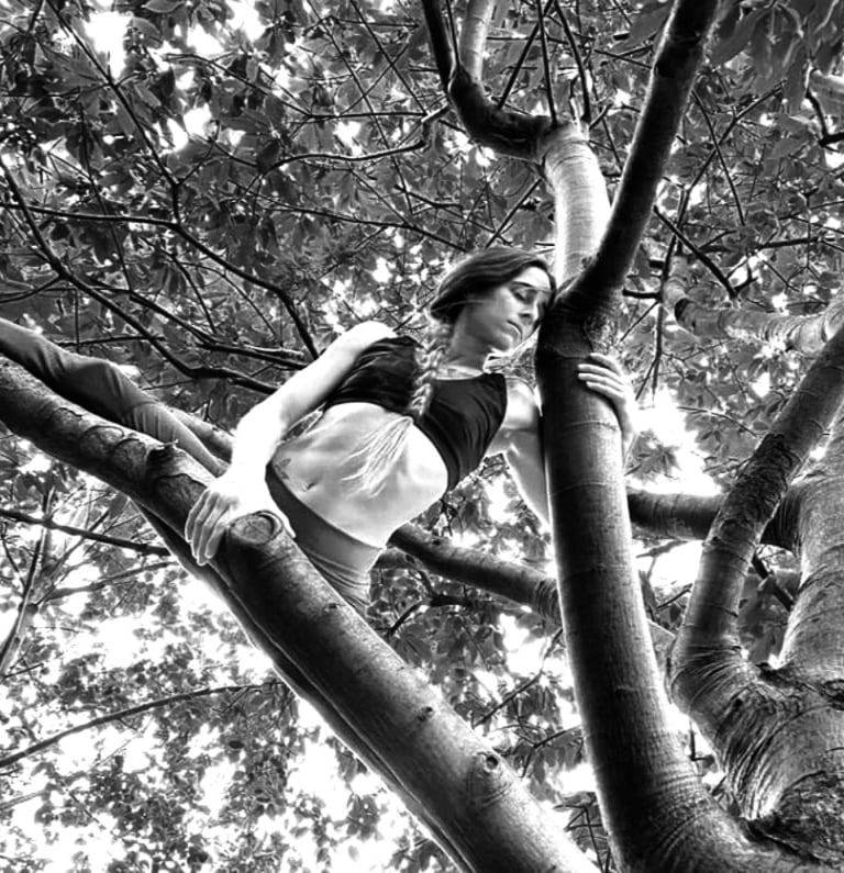 La danza è il mio linguaggio preferito: che sia aerea, tra i rami degli alberi o a piedi nudi sull’erba, è il modo in cui sento una grande energia di gioia abbracciare il mio corpo. Letteralmente è come un rituale che sento che "mi scatena" e mi scrolla di dosso ciò che non sono, che non è mio ma che fa parte della mia struttura - corpo -.