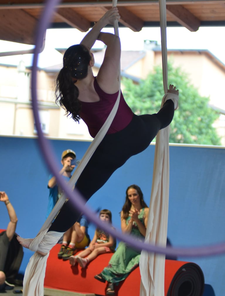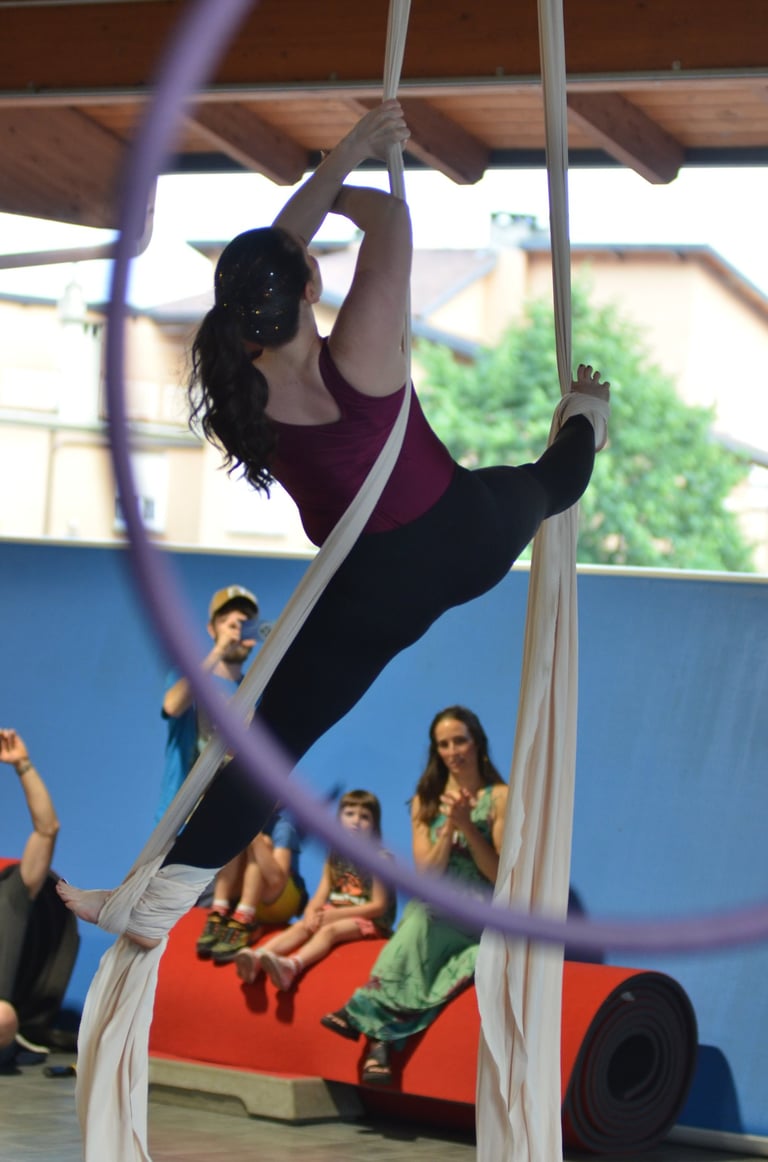 Proponiamo esperienze che intrecciano movimento, benessere e arte: acrobatica / danza aerea, treedance, motus vivo, yoga, teatro, danza libera.