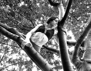 La danza è il mio linguaggio preferito: che sia aerea, tra i rami degli alberi o a piedi nudi sull’erba, è il modo in cui sento una grande energia di gioia abbracciare il mio corpo. Letteralmente è come un rituale che sento che "mi scatena" e mi scrolla di dosso ciò che non sono, che non è mio ma che fa parte della mia struttura - corpo -.