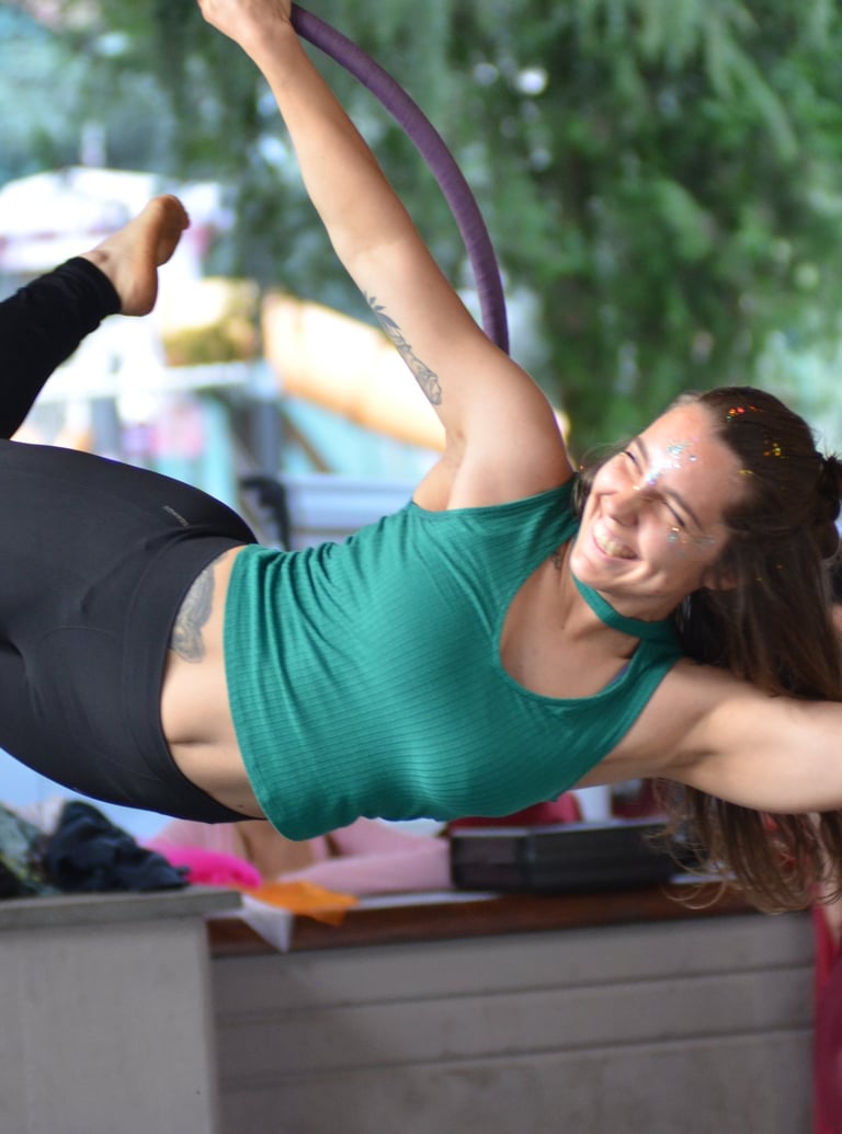 Dopo aver completato un teacher training in acrobatica aerea, conduco corsi dedicati all’inclusività e al benessere.